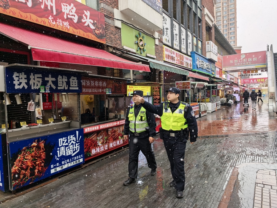 此外,一场温暖而细致的“安全体检”也在全区悄然进行。民警走进老旧小区、沿街商铺、工地工棚,排查广告牌松动、水管冻裂等安全隐患,并重点走访独居老人和困难家庭,查看房屋安全与取暖情况。如发现隐患,民警立即协调整改,切实筑牢社区平安防线。